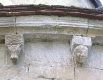 Les sculpteurs ont décoré les modillons en utilisant des motifs adaptés au support : ne ratez pas ce singe acrobate qui relève les pattes sur les épaules !